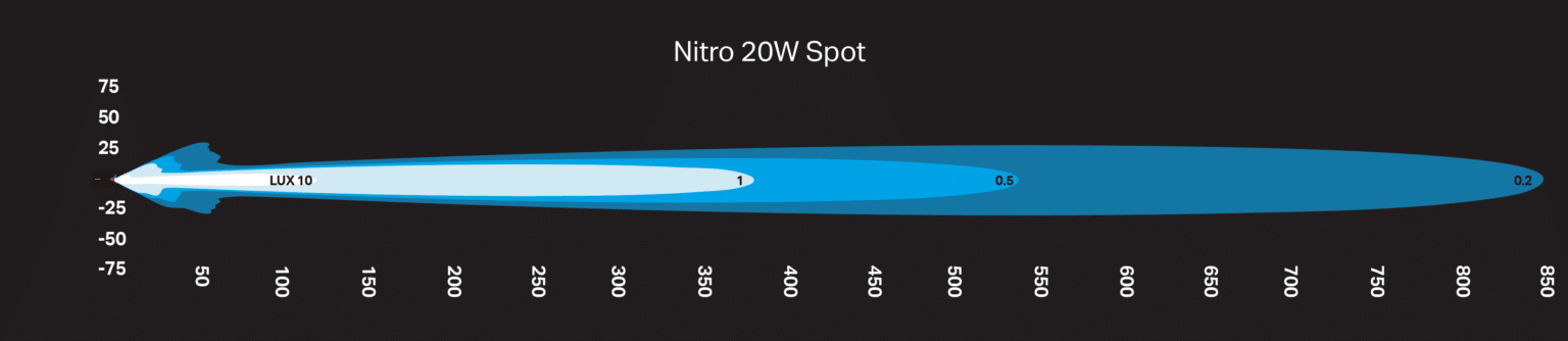 The Nitro Maxx 20W 7” Single Row Light Bars give you all the power of Ultra Vision in a sleek, streamlined and compact design. Available with either a spot beam producing 380m of usable light, or with a Widr® beam producing 88m, they are perfect as a versatile alternative to driving lights, or for use under a canopy when camping.